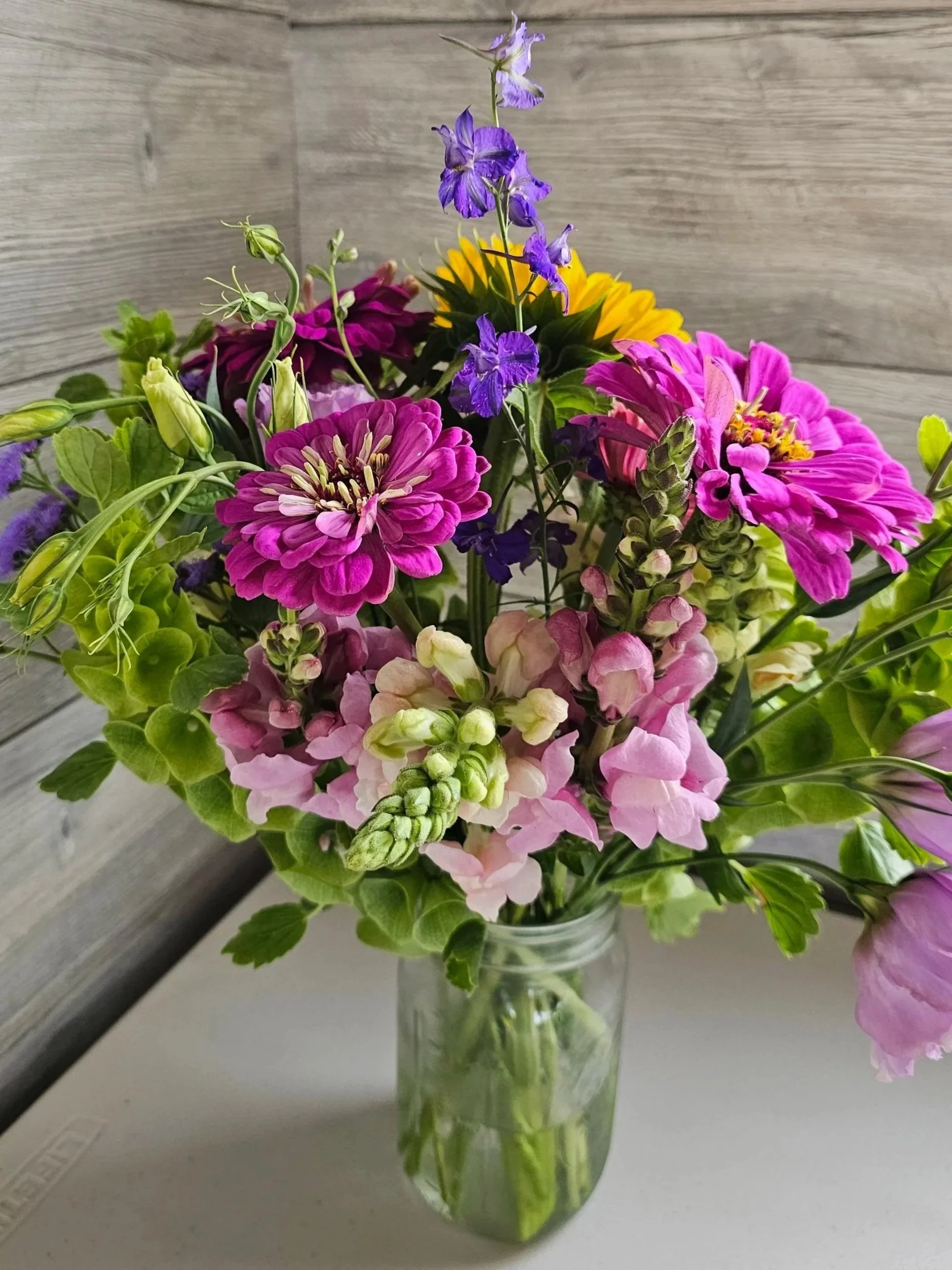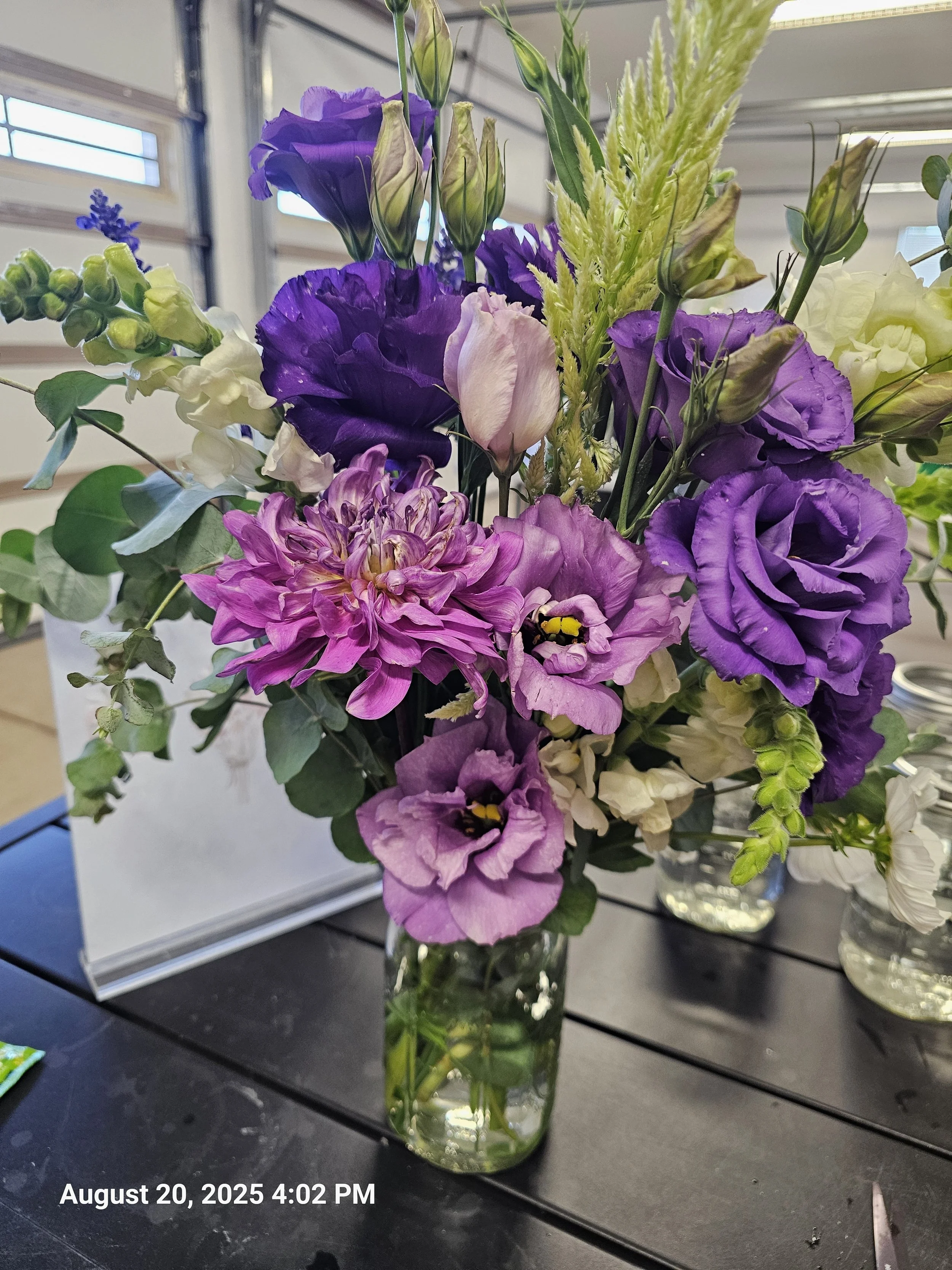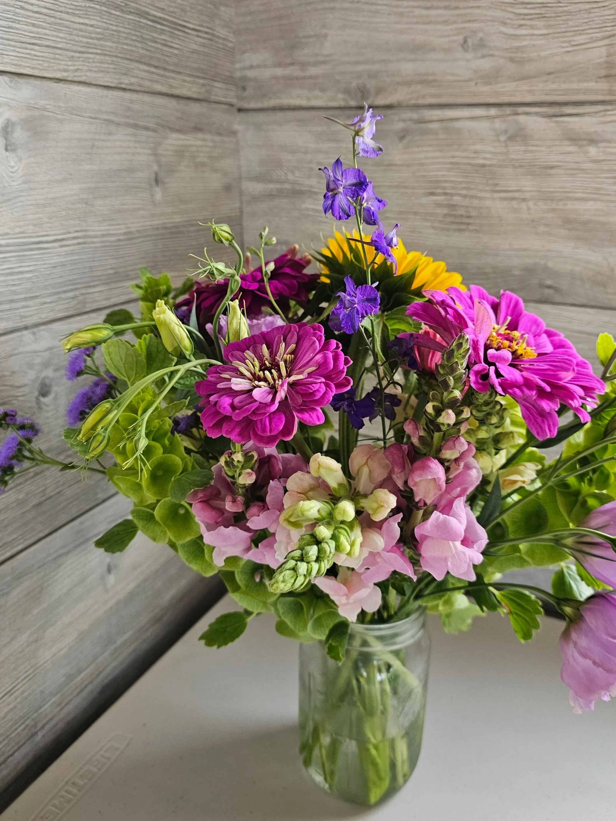 Join us for a hands-on floral experience at the farm, where you’ll learn the art of flower arranging in a fun, relaxed atmosphere. Your host, Renae, will begin with a brief tutorial on the basics of bouquet design. Then, you'll have the opportunity to select your own mason jar and a variety of fresh, seasonal flowers to create your personalized bouquet. The event concludes with a guided tour of the farm, offering a behind-the-scenes look at where the flowers are grown.