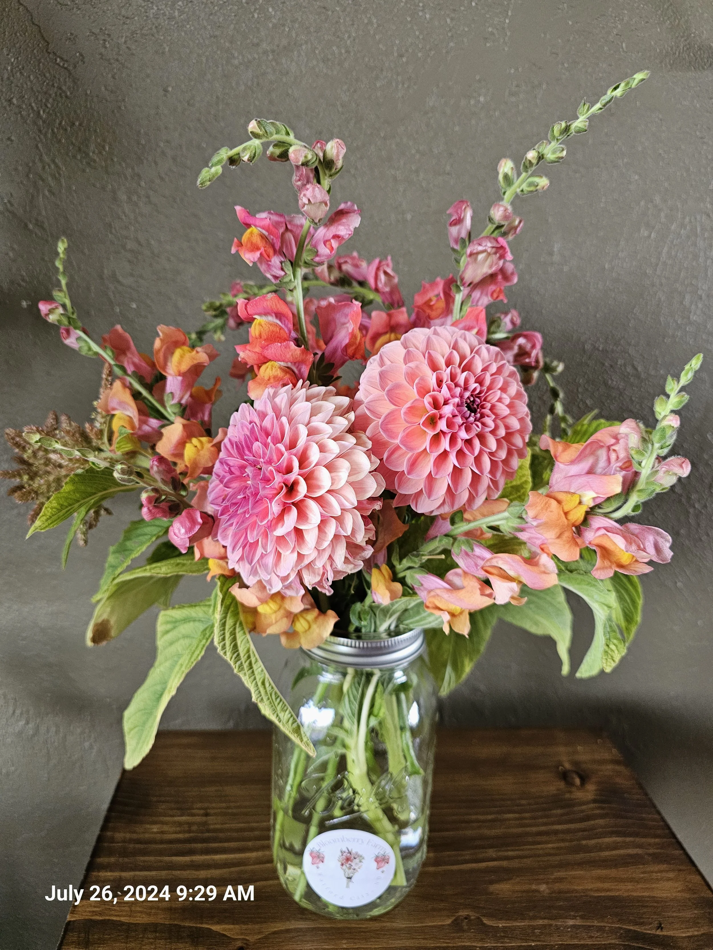 Our bouquets are designed with freshly harvested blooms from Bloomberry Farm, capturing the colors and textures of the season. From lush focal flowers to delicate fillers, every stem is selected for beauty and longevity.